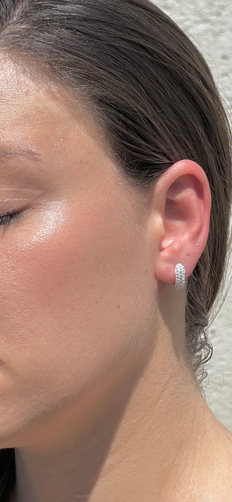 Chunky Silver hoops with a multi zirconia are the perfect statement earrings to add a touch of sophistication to any look. The lightweight design allows for all day comfort, while the silver plating provides an elegant look that you can wear with confidence.