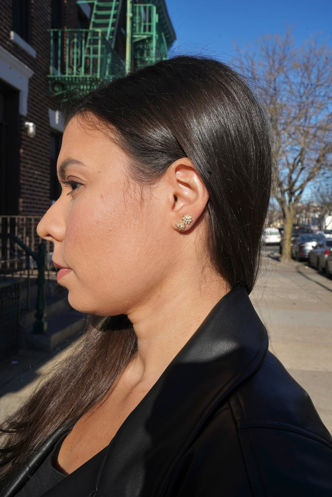 "Enhance your elegance with these charming flower-shaped stud earrings, delicately crafted in 18k gold-filled material. The intricate floral design adds a touch of grace to your look, while the gold-filled composition ensures lasting beauty and durability. Embrace a timeless and refined style with these exquisite 18k gold-filled flower stud earrings."