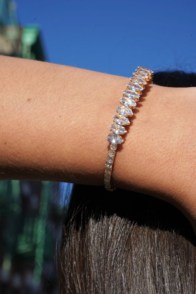 Indulge in opulence with our Zirconia Cuff Bracelet, a masterpiece crafted in radiant 18k gold-filled material. This elegant cuff features meticulously set zirconia stones, adding a touch of brilliance and sophistication. The gold-filled composition ensures lasting quality, while the sparkling zirconia embellishments elevate the bracelet to a statement piece. Adorn your wrist with the perfect blend of luxury and timeless beauty in this 18k gold-filled Zirconia Cuff Bracelet.